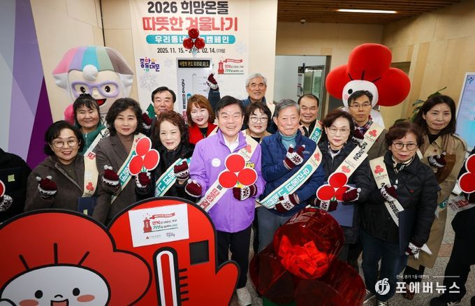 [ 포에버뉴스 김경순 기자 ] 서울 동대문구는 14일 구청 1층 로비에서 ‘사랑의 온도탑’ 제막식을 열고, 서울 사회복지공동모금회와 함께하는 ‘2026 희망온돌 따뜻한 겨울나기, 우리동네 나눔캠페인’을 시작했다고 밝혔다.
