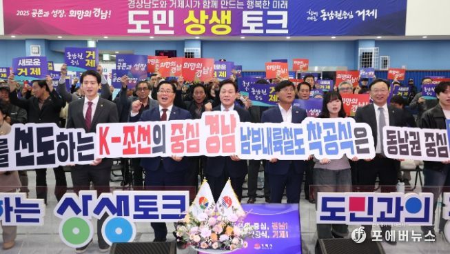 [ 포에버뉴스 사공선 기자 ] 경상남도는 18일 거제 반다비체육센터에서 열린 ‘도민 상생토크’에서 기업혁신파크, 광역교통망, 미래산업 등을 연계한 성장전략을 제시하며 지원 의지를 밝혔다.