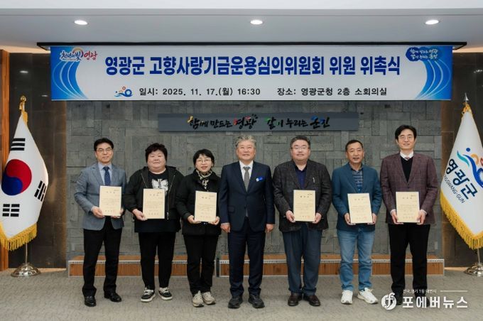 [ 포에버뉴스 오명숙 기자 ] 영광군은 11월 17일 군청 소회의실에서 임기가 새로 시작되는 영광군 고향사랑기금운용심의위원회 위원 6명에 대해 위촉장을 수여했다.