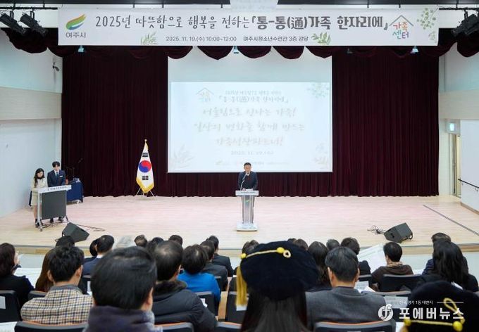 [ 포에버뉴스 박정배 기자 ] 여주시가족센터는 지난 19일 여주시청소년수련관에서 2025년 성과보고회 ‘따뜻함으로 행복을 전하는 '통-통(通)가족 한자리에'’를 200명의 시민이 참석한 가운데 성황리에 개최했다.