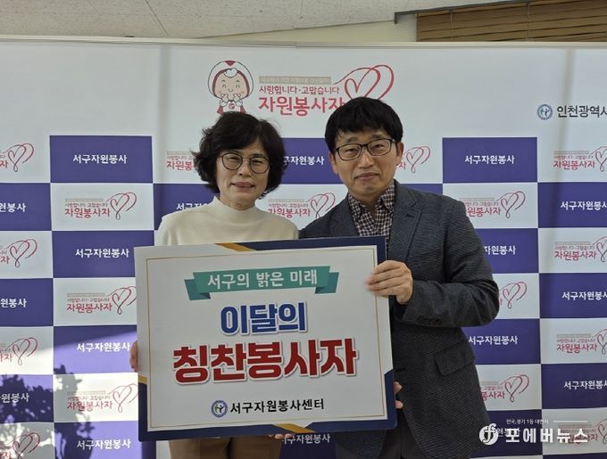 [ 포에버뉴스 김경순 기자 ] 인천서구자원봉사센터는 지역사회 발전을 위해 여러 분야에서 다양한 봉사활동에 참여한 자원봉사자를 격려하고 자원봉사 문화를 확산하기 위한 “자원봉사 칭찬릴레이”를 매월 실시하고 있다.