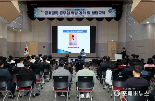 이번 교육에서는 ▲기술감사 주요 지적 사례 공유 ▲공사감독 공무원의 권한 및 역할 이해 ▲공사품질 향상을 위한 현장관리 기법 등 공사 추진 과정 전반에 필요한 핵심 내용을 다뤘다.