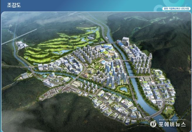 ‘춘천 기업혁신파크 조성사업’은 남산면 광판리 산 68번지 일원(363만㎡, 약 110만 평) 부지에 총사업비 약 1조 1,031억 원이 투입되는 대규모 프로젝트다. 특히 IT·AI·정밀의료 등 첨단 산업 분야를 집중 유치해 춘천의 기존 바이오 산업 성공모델을 새로운 산업 생태계로 확산시킨다는 목표다. 첨단산업 입지 함께 주거, 교육, 의료, 문화, 상업‧업무 등 자족적 복합기능을 갖춰 판교를 뛰어넘는 첨단산업 클러스터 기업도시를 조성할 계획이다.