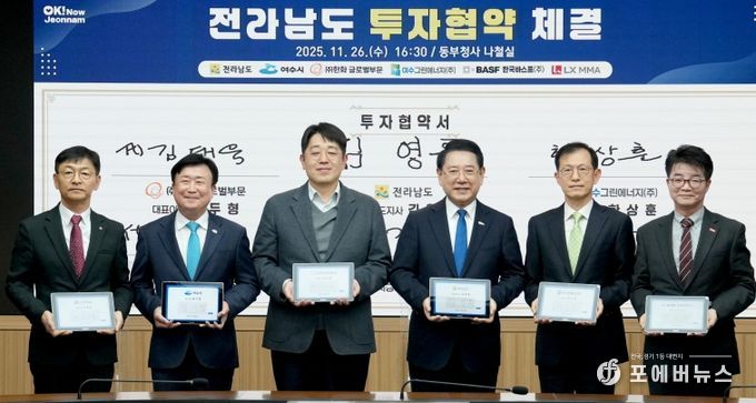 김영록 지사는 “여수국가산단은 대한민국 산업을 지탱해온 핵심 생산기지”라며 “이번 투자협약을 계기로 여수국가산단의 체질 개선과 지역경제 회복을 위해 총력을 기울이겠다”고 말했다.