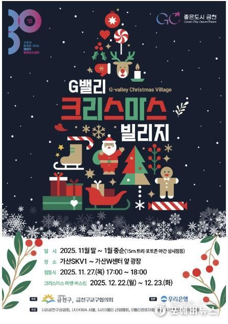설치된 대형 트리는 높이 15m 규모로 조성됐으며, 포토존과 함께 화려한 조명이 내년 1월 중순까지 G밸리 일대를 환하게 밝힐 예정이다. 트리 제작과 설치는 우리은행의 후원으로 진행돼 기업과 지역사회가 함께하는 나눔의 의미를 더했다.