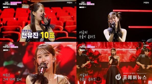 [ 포에버뉴스 사공선 기자 ] 가수 전유진이 ‘한일톱텐쇼’에 출연해 고혹적인 무대를 선사했다.