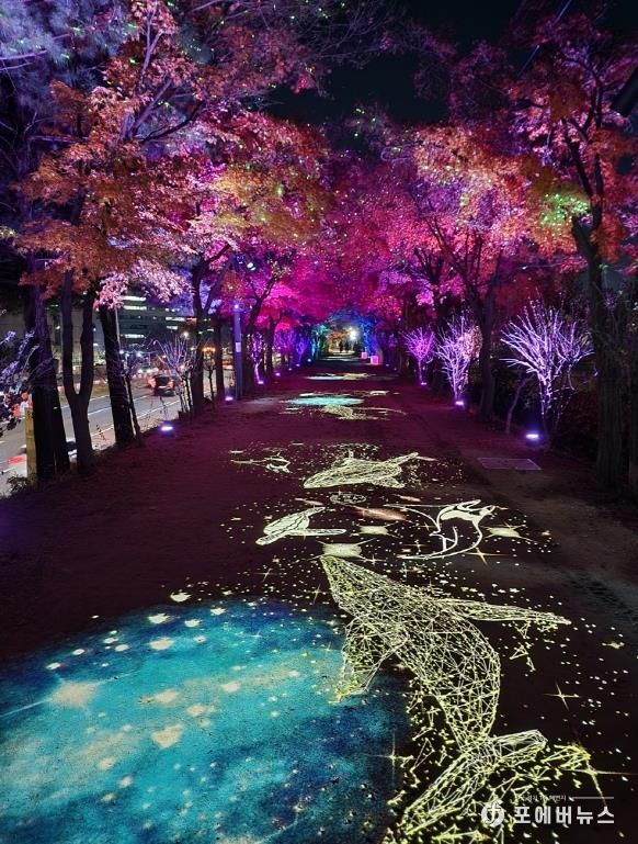 설치된 조명은 △가을 단풍잎이 흩날리는 ‘단풍길’ △연잎 위를 걷는 듯한 ‘물 위를 걷다’ △화사한 개나리가 수놓인 ‘개나리 꽃길’ △푸른 물결 속 고래가 유영하는 ‘밤하늘을 유영하는 고래’ 등 총 4가지 주제(테마)로 꾸며져 다양한 분위기를 즐길 수 있다.