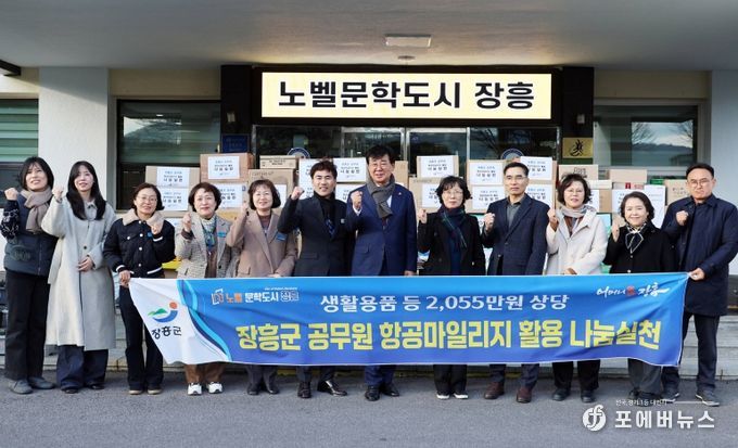 [ 포에버뉴스 오명숙 기자 ] 장흥군 공무원 122명이 공적 항공마일리지를 활용해 마련한 20,558,250원 상당의 생필품 197점을 지역 취약계층에 전달했다.