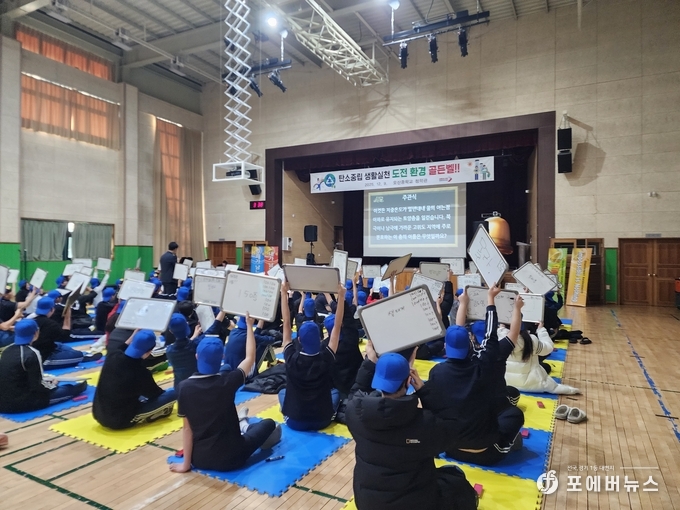 행사 시작 전에는 댄스 공연과 음악으로 분위기를 고조시켰고, 이후 진행된 골든벨 퀴즈에서는 ▲ 탄소중립 생활수칙 ▲ 기후변화 대응 ▲ 자원 재활용 ▲ 환경 정책 등 다양한 문제가 출제됐고, 학생들은 OX퀴즈와 주관식 문제 풀이를 통해 환경 지식을 쌓는 동시에 실천 의지를 되새기는 시간을 가졌다.