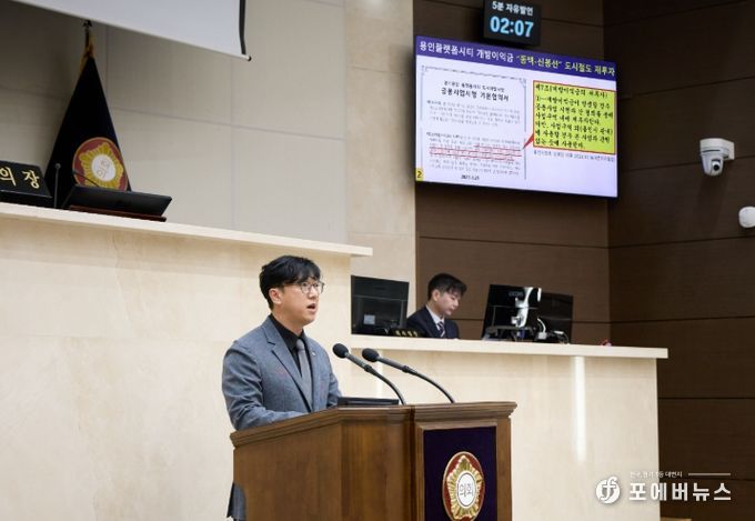 [ 포에버뉴스 김경순 기자 ] 용인특례시의회 김병민 의원(구성동,마북동,동백1동,동백2동/더불어민주당)은 16일 열린 제298회 임시회 제1차 본회의에서 5분 자유발언을 통해 ‘제2차 경기도 도시철도망 구축계획’에 반영된 동백–신봉선 철도망의 원활한 추진을 위한 정책적 대응과 선제적 준비를 강력히 촉구했다.