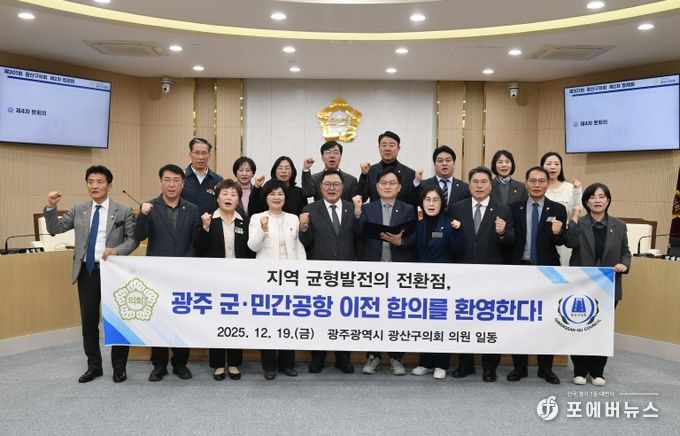 끝으로 광산구의회는 “정부와 광주시, 전남도, 무안군이 이번 합의를 토대로 군·민간공항 이전 사업을 성공적으로 마무리해 지역 발전과 주민 삶의 질 향상이라는 공동의 목표를 실현해 나가길 기대한다”고 밝혔다.