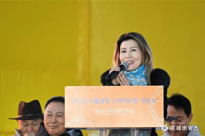 [ 포에버뉴스 김경순 기자 ] 서울특별시의회 시의원 아이수루 문화체육관광위원회 부위원장(더불어민주당·비례)이 12월 19일 오후 5시, 서울광장에서 열린'2025 서울광장 스케이트장 개장식'에 참석해 축사를 전하고, 시민과 함께하는 겨울철 대표 생활체육 공간의 개장을 축하했다.
