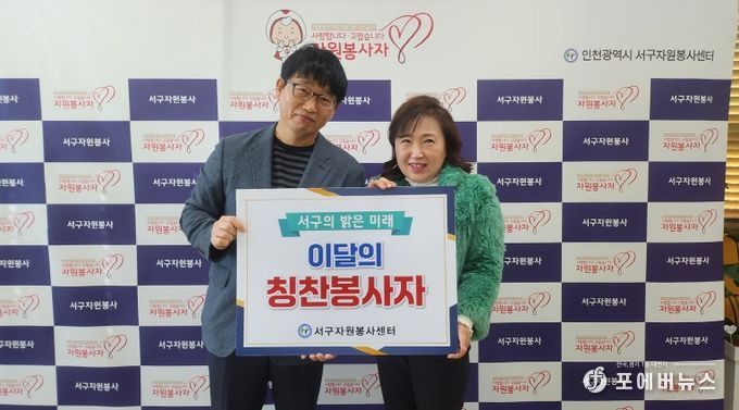 [ 포에버뉴스 김경순 기자 ] 인천서구자원봉사센터는 지역사회 발전을 위해 여러 분야에서 다양한 봉사활동에 참여한 자원봉사자를 격려하고 자원봉사 문화를 확산하기 위한 ‘자원봉사 칭찬릴레이’를 매월 실시하고 있다.