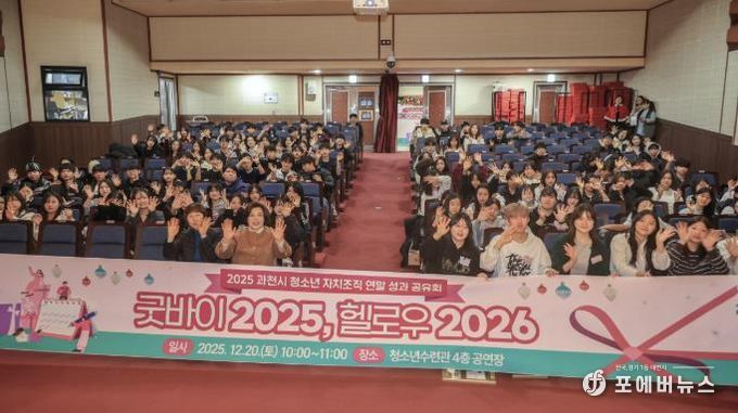 [ 포에버뉴스 김경순 기자 ] 과천시는 지난 20일 청소년수련관에서 ‘2025 과천시 청소년자치조직 연말 성과 공유회-굿바이 2025, 헬로우 2026’를 개최했다.