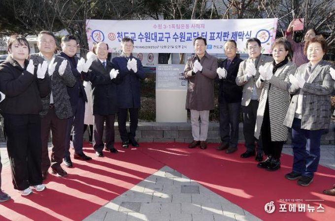 이날 제막식에는 이재준 시장, 천도교 수원대교구 안춘보 교구장과 교인 등이 참석했다.