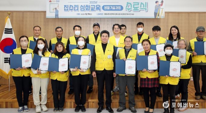 [ 포에버뉴스 김경순 기자 ] 인천시 중구는 지난 19일 영종2동 행정복지센터에서 ‘2025년 집수리 심화 교육 수료식’을 개최했다고 밝혔다.