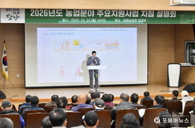 [ 포에버뉴스 오명숙 기자 ] 담양군은 지난 22일 담빛농업관 대강당에서 관내 농업인을 대상으로 ‘2026년도 농업 분야 주요 지원사업 지침설명회’를 열고, 농업 분야 보조사업 전반에 대한 추진 방향과 세부 내용을 안내했다.