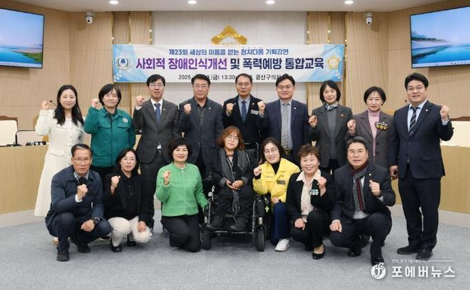 [ 포에버뉴스 오명숙 기자 ] 광산구의회가 19일 전체 의원을 대상으로 장애인식 개선 및 4대 폭력 예방을 위한 ‘정치다움 기획강연’을 개최했다.