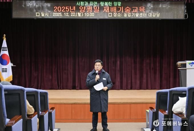 [ 포에버뉴스 박정배 기자 ] 고품질 양평밀 생산을 위한 2025년 양평밀 재배기술 교육이 지난 22일 오전 10시부터 12시까지 양평군농업기술센터에서 개최됐다.