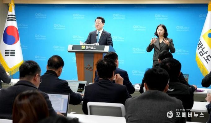 [ 포에버뉴스 오명숙 기자 ] 김영록 전라남도지사는 23일 도청 브리핑룸에서 2025년 송년기자간담회를 열어 국고 10조 시대 개막, AI·에너지 미래기반 대거 마련 등 민선 7·8기 성과를 설명하고, 전남 대부흥 비전과 2026년 도정 방향을 발표했다.