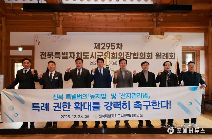 [ 포에버뉴스 오명숙 기자 ] 지난 23일 무주 태권도원에서 열린 전북특별자치도 시군의회의장협의회(회장 남관우 전주시의회 의장) 월례회에서 손종석 순창군의회 의장이 건의한 전북특별법 핵심 특례인 '농지법'과 '산지관리법'의 실효성 확보를 위한 권한 확대를 촉구하는 건의안이 채택됐다.