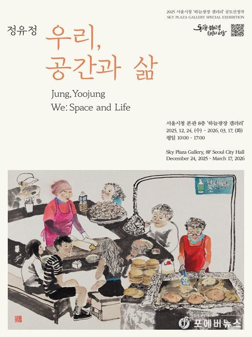 [ 포에버뉴스 김경순 기자 ] 일상 속에서 만나는 따뜻한 웃음의 순간들이 한지 위에 펼쳐진다. 12월 24일부터 2026년 3월 17일까지 서울시청 본관 8층 ‘하늘광장 갤러리(Sky Plaza Gallery)’에서 정유정 작가의 ‘우리, 공간과 삶’ 전시가 열린다.