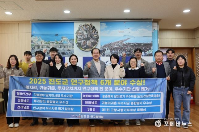 [ 포에버뉴스 사공선 기자 ] 진도군이 2025년 한 해 동안 인구정책 6개 분야에서 잇따라 우수기관으로 선정되며, 인구정책 추진 성과를 대외적으로 인정받았다.