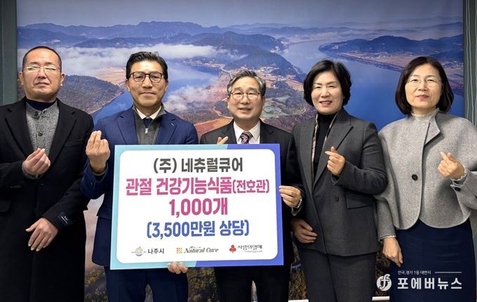 강상구 나주 부시장은 “산림 연구 성과를 바탕으로 한 건강기능식품을 연말 취약계층에 지원해 주신 ㈜네츄럴큐어와 전남산림연구원에 감사드린다”며 “기탁된 물품은 필요한 이웃들에게 소중히 전달하겠다”고 말했다.