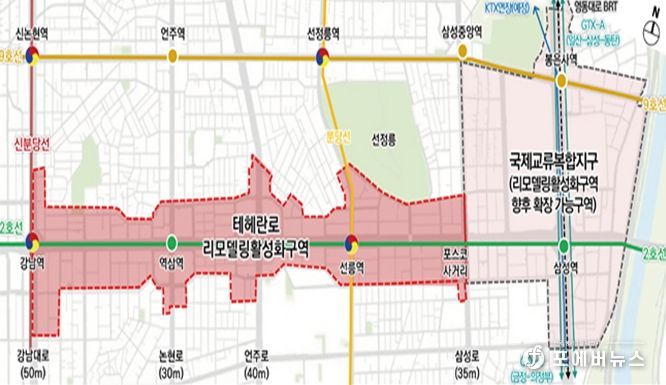 강남구 테헤란로 일대는 업무 및 교류기능 지원강화 등 도심 위상에 맞는 개발이 필요한 지역으로 최근 업무 수요 증가와 함께 노후 업무시설 개선에 대한 요구가 지속적으로 제기돼 왔다. 금번 ‘리모델링활성화구역’ 지정 구간은 강남역사거리부터 포스코사거리까지 약 95만㎡ 규모로, 준공 후 15년 이상 경과한 노후 업무시설을 대상으로 구조 안전성 강화와 수직증축, 용적률 완화 등 인센티브를 적용해 친환경 및 노후건축물 구조안전 리모델링이 단계적으로 추진된다.