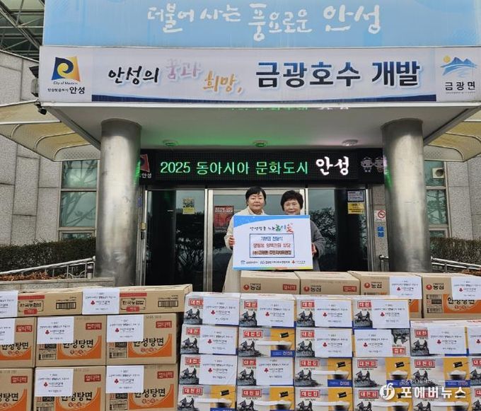 [ 포에버뉴스 김경순 기자 ] 안성시는 12월 23일, 금광면 주민자치위원회 양영순 위원장이 겨울철 취약계층 가구의 따뜻한 겨울나기를 돕기 위해 라면, 김 등 생필품 100만원 상당을 금광면 행정복지센터에 기탁했다고 밝혔다.