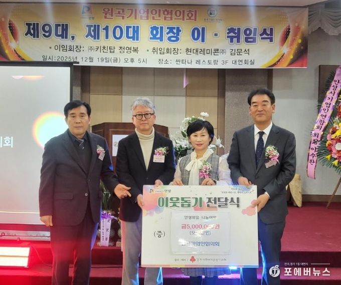 원곡기업인협의회는 “추운 겨울을 보내고 있을 이웃들에게 작게나마 보탬이 되길 바라는 마음으로 성금을 기탁하게 됐다”며, “원곡면에서 기업을 운영하는 만큼, 앞으로도 지역사회와 소통하며 나눔문화 확산에 앞장서는 든든한 파트너가 되겠다”고 밝혔다.