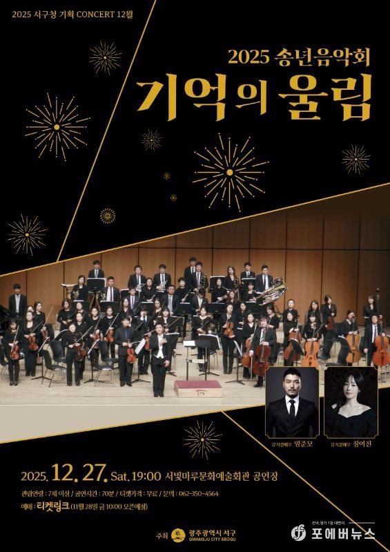 [ 포에버뉴스 오명숙 기자 ] 광주광역시 서구는 2025년 한 해를 마무리하며 오는 27일 오후7시 서빛마루문화예술회관에서 송년음악회 ‘기억의 울림’을 개최한다.