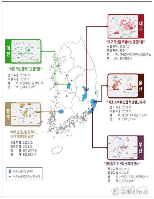 기존 5개 광역시의 도심융합특구는 특구별로 조성목표, 추진전략, 단계별 실행계획을 제시하는 한편, 혁신 잠재력이 높은 비수도권 인구 50만 이상 지방 대도시 등으로 도심융합특구 추가 지정을 위한 기준도 마련했다.