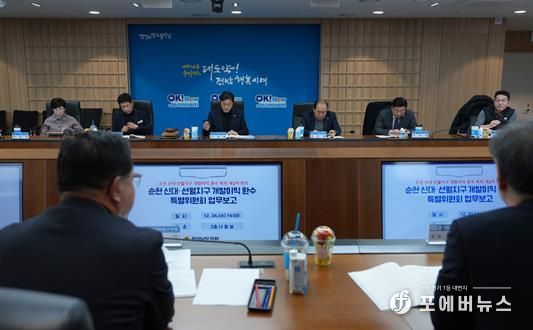 [ 포에버뉴스 오명숙 기자 ] 전라남도의회 순천 신대ㆍ선월지구 개발이익 환수 특별위원회는 지난 24일 전라남도 동부지역본부에서 제2차 회의를 열고, 광양만권경제자유구역청의 업무보고 청취 후 현안에 대한 질의를 진행했다.