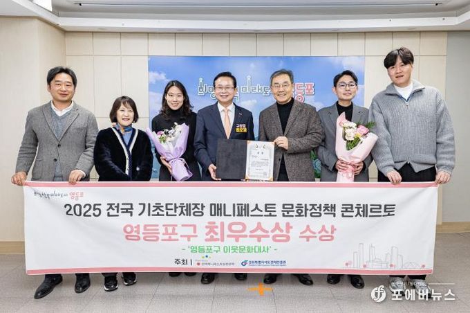 [ 포에버뉴스 김경순 기자 ] 영등포구가 사단법인 한국매니페스토실천본부가 주최한 ‘2025년 제1회 전국 메니페스토 문화정책 콘체르토(Concerto)’에서 문화활동 활성화 분야 최우수상을 수상했다고 밝혔다.