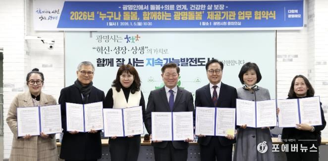 시는 5일 시청 중회의실에서 관내 한의원, 의원, 요양센터 등 41개 돌봄서비스 기관과 ‘누구나 돌봄, 함께하는 광명돌봄’ 서비스 업무협약을 체결했다.