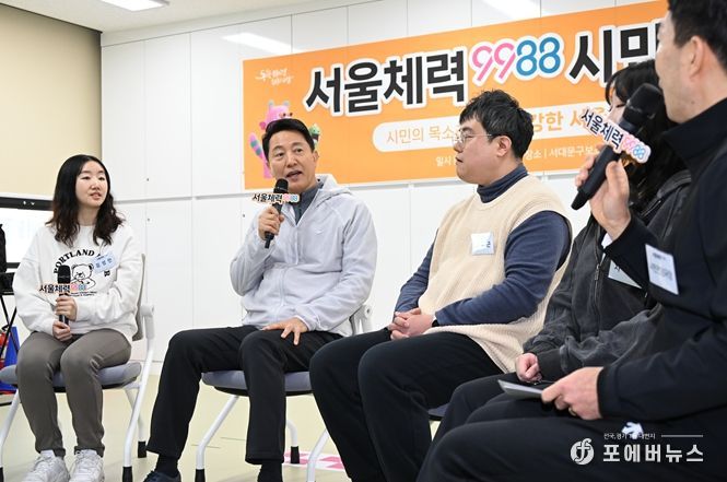 [ 포에버뉴스 김경순 기자 ] 서울시가 체력인증센터를 찾은 시민들의 생생한 체험 경험을 공유하고 앞으로의 개선 방안을 모색하기 위해 1월 5일 ‘서울체력9988 시민 간담회’를 개최했다. 이날 현장을 찾은 오세훈 서울시장은 새해를 맞아 시민 누구나 일상 속에서 참여할 수 있는 ‘건강 5대장 챌린지’를 깜짝 발표하며 눈길을 끌었다.