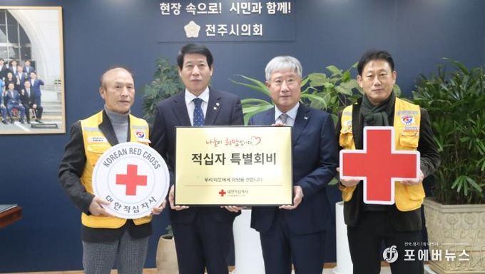 이에 김 회장은 “적십자 특별회비로 나눔문화 확산에 앞장선 전주시의회에 감사드리며, 앞으로도 적십자는 도움의 손길이 필요한 곳에 늘 함께하겠다”고 화답했다.