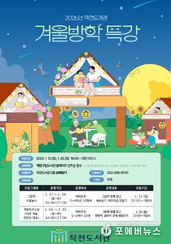 [ 포에버뉴스 김경순 기자 ] 재단법인 인천광역시계양구인재양성장학교육재단 작전도서관에서는 2026년 겨울방학을 맞아 어린이를 위한 다양한 방학 특강 프로그램을 운영한다.