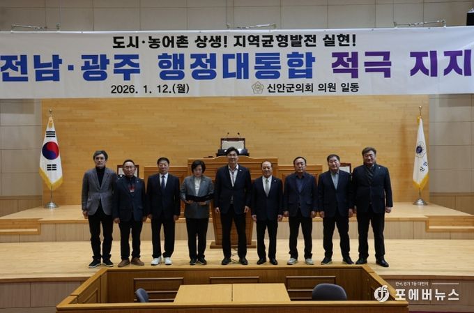 이에 신안군의회는 이러한 입장을 담아 전남·광주 행정통합을 적극 지지하는 성명서를 공식 발표하며, “전남·광주 행정통합은 지역의 미래를 살리고 다음 세대에 희망을 주는 선택”이라며 “이미 중앙 정치권과 정부 차원에서 논의가 진전되고 있는 만큼, 지역 또한 책임 있는 자세로 통합 논의에 힘을 모아야 한다”라고 밝혔다.