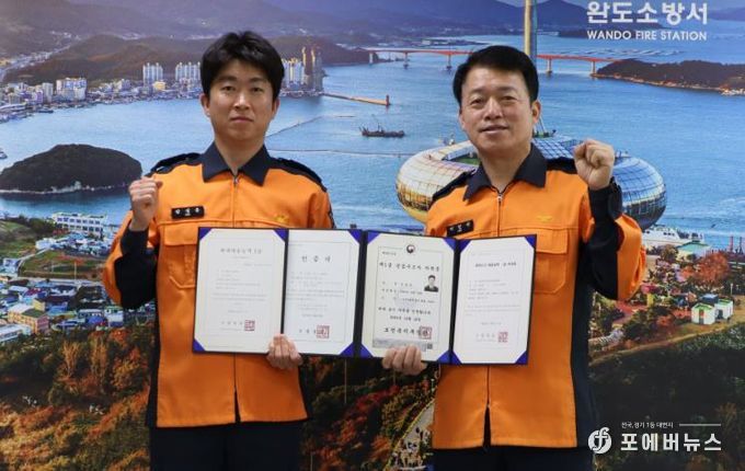그는 이 밖에도 완도 지역의 지리적 특성에 맞춰 프리다이빙, 테크니컬 다이빙, 소형선박조종면허, 특수트레일러 운전면허 등 재난 현장에 필요한 전문 자격증을 다수 보유한 베테랑이다.