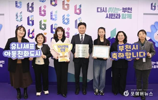 [ 포에버뉴스 김경순 기자 ] 부천시는 유니세프 한국위원회로부터 ‘유니세프 아동친화도시’ 인증을 갱신했다고 14일 밝혔다. 이번 인증은 2019년 12월 최초 인증에 이어 자격을 유지한 것으로, 유효기간은 2029년 12월 30일까지다.