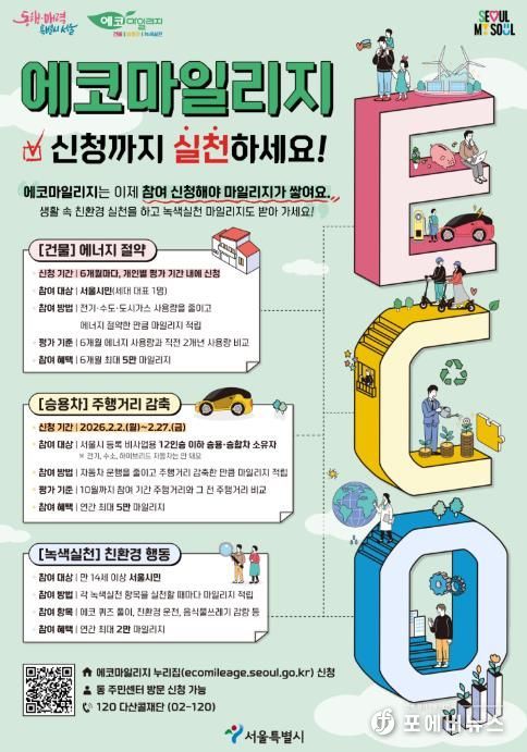 또한 음식물쓰레기 감량이나 친환경 운전 습관 실천 시 최대 5,000마일리지(5,000원 상당)를 지급하는 ‘녹색실천 마일리지’ 항목이 신설됐다. 이 밖에도 에코 퀴즈 참여, 서울시 주관 환경교육 또는 기후 관련 온·오프라인 행사 참여 시 마일리지가 지급된다.