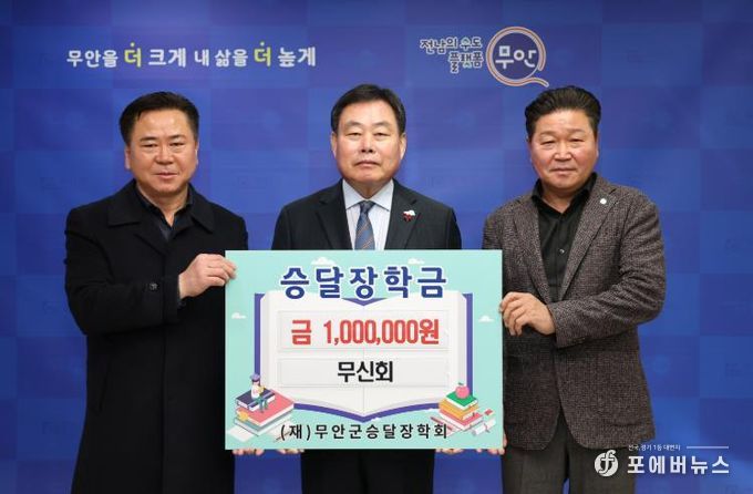 [ 포에버뉴스 오명숙 기자 ] 무안군은 지난 1월 19일 무신회 박석현 회장이 지역 인재 육성을 지원하기 위해 (재)무안군승달장학회에 장학금 100만 원을 기탁했다고 밝혔다.