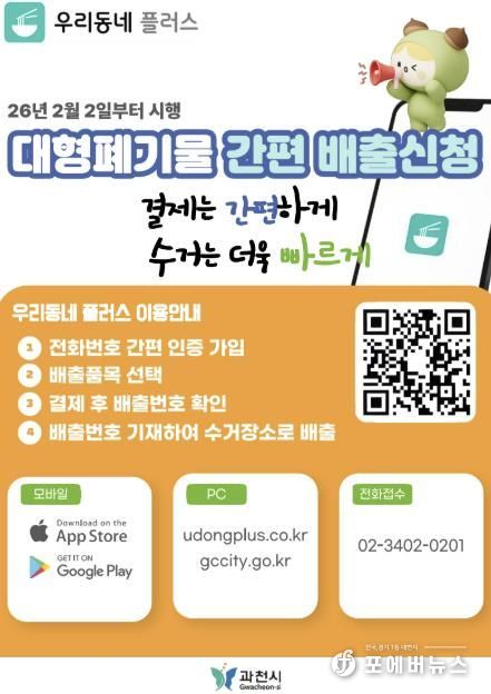 [ 포에버뉴스 김경순 기자 ] 과천시는 시민 편의를 높이기 위해 오는 2월 2일부터 대형폐기물 온라인·모바일 배출 시스템을 본격 운영한다고 밝혔다.