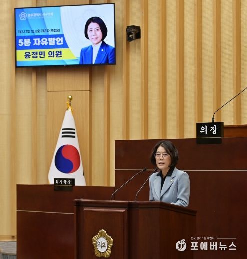 윤정민 서구의원(더불어민주당)은 지난 23일 열린 제337회 임시회 제2차 본회의 5분자유발언에서“공공형 실내놀이터 공모사업 선정을 위해 애써온 집행부의 노력에 감사드린다”며 “이번 사업이 일회성 시설 조성에 그치지 않고 공공돌봄의 주요 정책으로 자리매김해야 한다”고 강조했다.