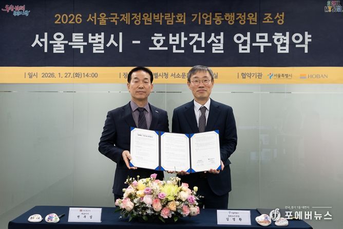 [ 포에버뉴스 김경순 기자 ] 서울시는 2026년 5월 1일 서울숲에서 개막하는 서울국제정원박람회를 앞두고, 호반건설과 ‘기업동행정원’ 조성을 위한 업무협약(MOU)을 1월 27일 체결했다.