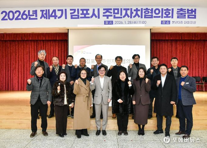[ 포에버뉴스 김경순 기자 ] 2026년 제4기 주민자치협의회가 출범하며 새로운 도약을 알렸다. 김포시는 28일 시청 대회의실에서 14개 읍‧면‧동 4기 주민자치회장으로 구성된 주민자치협의회의 첫 정기회의를 개최하고, 본격적인 4기 주민자치회 운영의 시작을 알렸다.