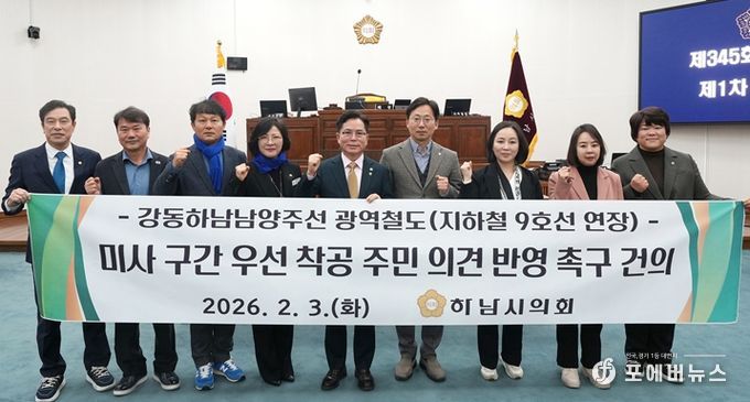 금 의장은 제안설명을 통해 “3차례 유찰된 2공구(하남 망월~남양주 다산)의 공기 지연이 전체 사업의 발목을 잡아서는 안 된다”라며 “시공이 상대적으로 용이하고 수요가 폭발적인 서울 강동(943 정거장)과 하남 미사(944 정거장) 구간을 분리하여 우선 착공함으로써 사업의 추진 동력을 확보하고 시민들의 극심한 교통난을 선제적으로 해결해야 한다”라고 강조했다.