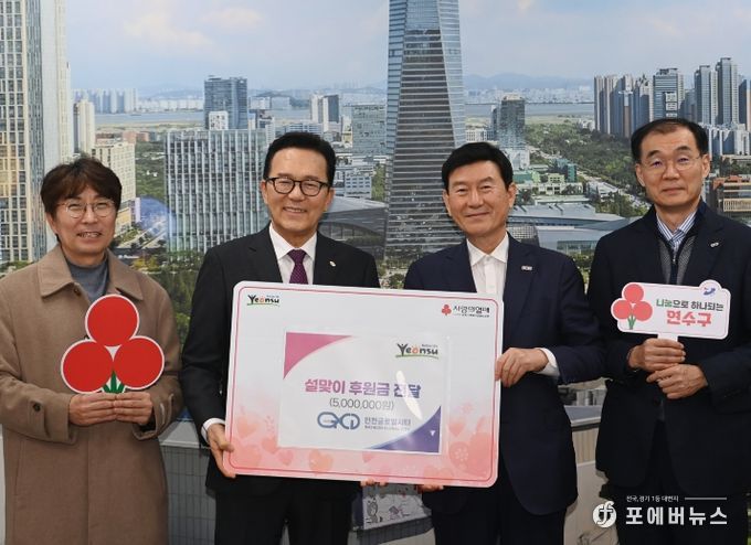 [ 포에버뉴스 김경순 기자 ] 연수구는 지난 5일 ㈜인천글로벌시티(대표 정근영)로부터 지역 내 취약계층을 위한 이웃돕기 성금 500만 원을 전달받았다.